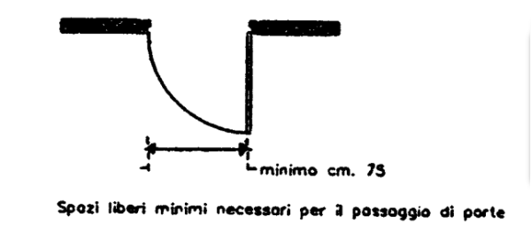 | Luce netta Porte | La luce netta della porta di accesso di ogni edificio e di ogni unità immobiliare deve essere di almeno cm 80. La luce netta delle altre porte deve essere di almeno cm 75. |